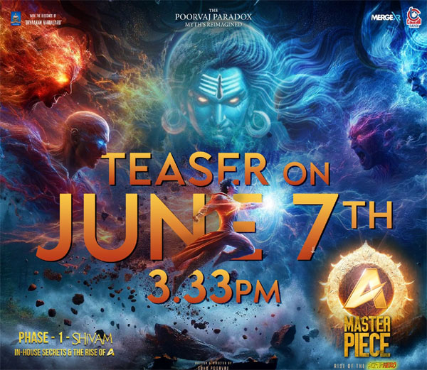 ఈ రోజు “ఏ మాస్టర్ పీస్” సినిమా టీజర్ అనౌన్స్ మెంట్ చేశారు మేకర్స్. జూన్ 7వ తేదీ మధ్యాహ్నం 3.33 నిమిషాలకు టీజర్ విడుదల చేస్తున్నట్లు ప్రకటించారు. అద్భుతమైన విజువల్స్, భారీ మేకింగ్, విజువల్ ఎఫెక్టులతో “ఏ మాస్టర్ పీస్” సినిమాను రూపొందిస్తున్నారు దర్శకుడు సుకు పూర్వజ్. ఈ సినిమా చిత్రీకరణ తుది దశకు చేరుకుంది. ఈ ఏడాదిలోనే “ఏ మాస్టర్ పీస్” సినిమాను ప్రేక్షకుల ముందుకు తీసుకొచ్చేందుకు సన్నాహాలు చేస్తున్నారు. హై స్టాండర్డ్ ప్రొడక్షన్ వ్యాల్యూస్ తో యూనిక్ సూపర్ హీరో ఫిల్మ్ గా “ఏ మాస్టర్ పీస్” ఉండబోతోంది.