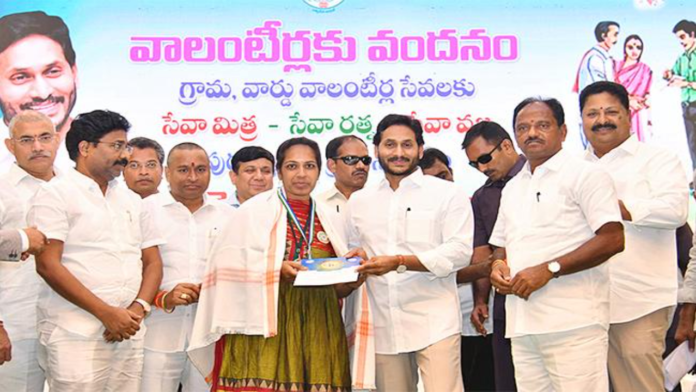 స్వతంత్ర టీవీ, వెబ్ డెస్క్: విజయవాడలోని ఏ ప్లస్‌ కన్వెన్షన్‌ సెంటర్‌‌లో వాలంటీర్ల సేవా పురస్కారాల కార్యక్రమాన్ని సీఎం వైఎస్‌ జగన్ మోహన్ రెడ్డి జ్యోతి ప్రజ్వలన చేసి ప్రారంభించారు. ప్రజలకు వలంటీర్లు అందిస్తున్న సేవలకు గుర్తింపుగా వారికి వందనం చెప్పడమే ఈ కార్యక్రమ ఉద్దేశ్యం అని అన్నారు. వరు­సగా మూడో ఏడాది గ్రామ, వార్డు సచివాల­యాల పరిధిలో సేవా మిత్ర, సేవా రత్న, సేవా వజ్ర అవార్డులను ఇచ్చే కార్యక్రమం జరుపుకోవడం అభినందనీయం అన్నారు. ఈ కార్యక్రమంలో ఉత్తమ వాలంటీర్లకు సీఎం జగన్ సేవా మిత్ర, సేవా రత్న, సేవా వజ్ర పురస్కారాలు ప్రదానం చేసి సత్కరించారు.
