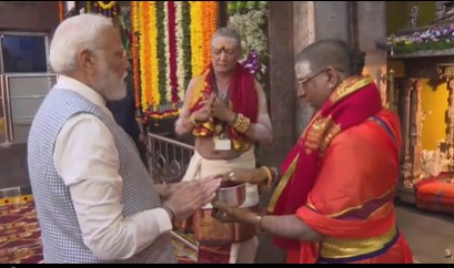 ప్రధాని నరేంద్రమోదీ సికింద్రాబాద్లోని మహంకాళి అమ్మవారిని దర్శించుకున్నారు. తొలుత ఆలయం వద్దకు చేరుకున్న ప్రధానికి అర్చకులు, వేదపండితులు ఘనస్వాగతం పలికారు. ఆ తర్వాత మోదీ ప్రత్యేక పూజలు నిర్వ హించారు. అనంతరం ఆలయ అధికారులు ఆయనకు అమ్మవారి చిత్రపటాన్ని అంద జేశారు. ప్రధాని పర్యటన నేపథ్యంలో ఆలయ పరిసర ప్రాంతాల్లో పటిష్ఠ బందోబస్తు ఏర్పాటు చేశారు. మహంకాళి అమ్మవారి దర్శనం తర్వాత సంగారెడ్డి పర్యటనకు మోదీ బయల్దేరారు. బేగంపేట విమానాశ్రయానికి చేరుకుని అక్కడి నుంచి హెలికాప్టర్లో వెళ్లారు.