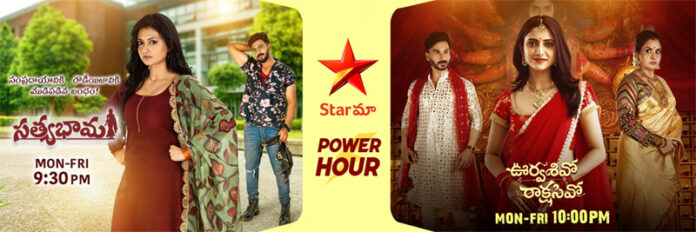 హైదరాబాద్: స్టార్ మా పవర్ అవర్ విజయవంతంగా ప్రారంభించడం ద్వారా టెలివిజన్‌‌లోనే ఎంతో ఆకట్టుకునే విధంగా ఉంది. పవర్ అవర్‌లో ఎంతో ఆసక్తిగా ఎదురుచూస్తున్న “సత్యభామ”, “ఊర్వసి వో రాక్షసి వో” షోలు ఉన్నాయి. పవర్ అవర్ ప్రీమియర్ ఈ నెల 18న రాత్రి 9:30 గంటలకు “సత్యభామ”తో ప్రారంభమైంది. ఆ తర్వాత రాత్రి 10:00 గంటలకు “ఊర్వసి వో రాక్షసి వో” ప్రతి సోమవారం నుండి శుక్రవారం వరకు ప్రసారం అవుతోంది.