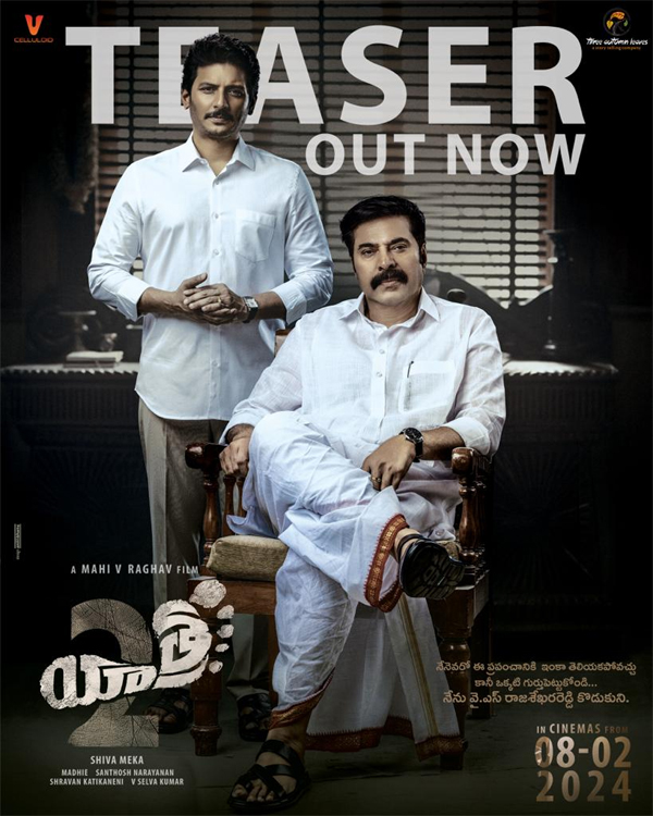 మహి వి రాఘవ్ దర్శకత్వంలో త్రీ ఆట‌మ్ లీవ్స్‌, వీ సెల్యూలాయిడ్, శివ మేక సంయుక్తంగా నిర్మిస్తోన్న చిత్రం ‘యాత్ర 2’. ఇందులో వై.ఎస్‌.రాజ‌శేఖ‌ర్ రెడ్డి పాత్ర‌లో మ‌ల‌యాళం సూప‌ర్ స్టార్ మ‌మ్ముట్టి, వై.ఎస్‌.జ‌గ‌న్‌ పాత్ర‌లో కోలీవుడ్ స్టార్ జీవా న‌టిస్తున్నారు. ఈ సినిమా షూటింగ్ శ‌ర‌వేగంగా జ‌రుగుతోంది. ఫిబ్రవరి 8న ఈ చిత్రాన్ని ప్రపంచ వ్యాప్తంగా గ్రాండ్ రిలీజ్ చేయటానికి సన్నాహాలు చేస్తున్నారు. ఈ క్రమంలో శుక్రవారం మేకర్స్ ‘యాత్ర 2’ టీజర్‌ను విడుదల చేశారు.